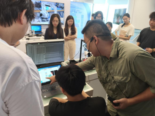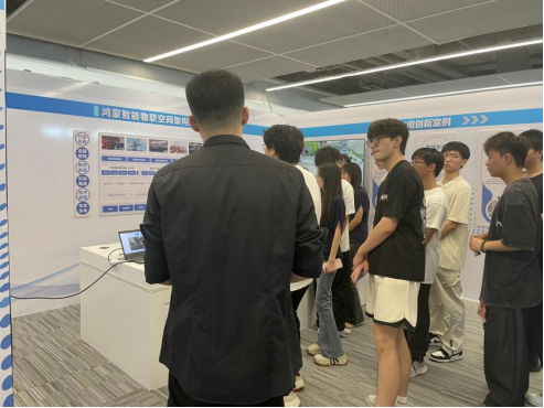 在企业导师的引导下,同学们参观了中软国际教育智慧展厅,了解了人形机器人的精准操作、分拣机器人的高效作业、无人乒乓球桌的人机对抗、全自主无人巡检科创实验平台的智能运行以及鸿蒙智能生态等各类智能应用场景,同时也给同学们进行了鸿蒙实训箱的操作演示以及零部件介绍。通过现场讲解、技术演示和亲身体验,同学们深刻感受到计算机鸿蒙系统在智能系统中的核心作用。