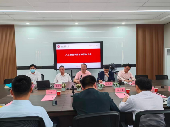 广州华商学院人工智能学院于10月21日上午在创新楼301会议室举行干部任命大会,宣布何顺发同志担任人工智能学院党委副书记。广州华商学院副校长吕峻闽、校党委组织部副部长王国庆、人工智能学院院长戴经国、人工智能学院党委书记、副院长杨波、原人工智能学院党委副书记陈洋广(现“百千万工程”办公室主任)、原外国语学院党委副书记、副院长何顺发(现人工智能学院党委副书记何顺发)、副院长叶仕通、院长助理洪绍勇、杨本胜、学院行政教辅共同出席。会议由学院党委书记杨波主持。